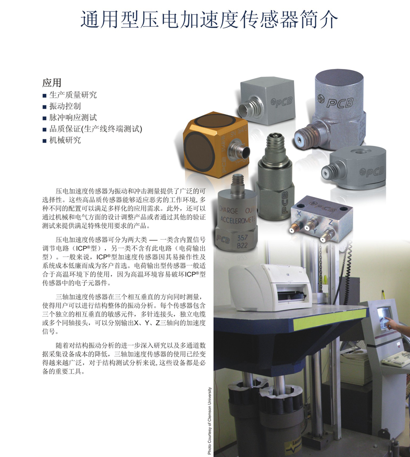 PCB Piezotronics制造精密型振動加速度計以滿足振動、沖擊、加速度測量和運動監測、控制和測試應用。PCB Piezotronincs提供ICP、PE、MEMS和電容傳感技術用于實現各種各樣的測量要求。PCB生產的加速度計有單軸、雙軸和三軸可選。這些產品用于工廠生產和設計人員以及研發組織的現場測試,從來獲取關鍵數據。除精密小型傳感器外,PCB的IMI部門還提供堅固的加速度計和振動傳感器用于工業機器振動監控。由于不同的測試和工業環境有不同的安裝條件,所以PCB制造的加速度計具有各種不同的靈敏度、溫度、頻率響應、振幅響應、外形和引線的接地配置以滿足不同的需求。加速度計來評估設備或結構性能的關鍵因素,因此,這樣的應用通常需要整個測量系統的校準證明,從傳感器到*終的輸出。美國PCB加速度傳感器355B03的每個傳感器出貨時都隨貨附帶一個可溯源到NIST的校準證書。