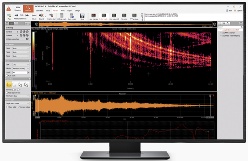 所有 Dewesoft 數據采集系統均免費提供屢獲殊榮的 DewesoftX 專業版 數據采集軟件。DewesoftX 是世面上先進且易于使用的數據采集和信號處理軟件。 DewesoftX 的靈活性和不斷增加的信號處理功能將幫助您解決所有測試和測量需求。與其他 DAQ 系統相比,我們的DAQ 軟件為您提供了許多優勢。即插即用,硬件自動檢測,智能 TEDS 傳感器,上等存儲、實時顯示以及強大的數學庫等功能將把測量和分析功能不斷提升到新的水平。